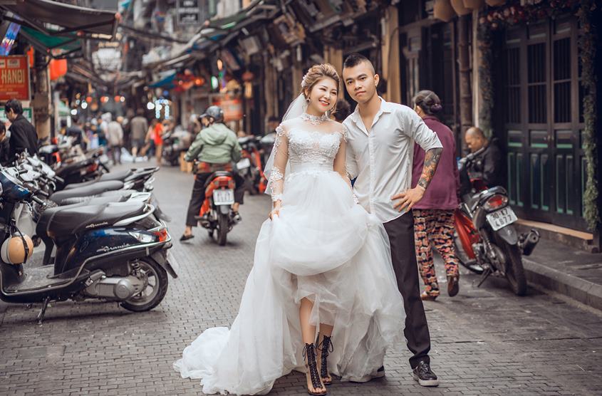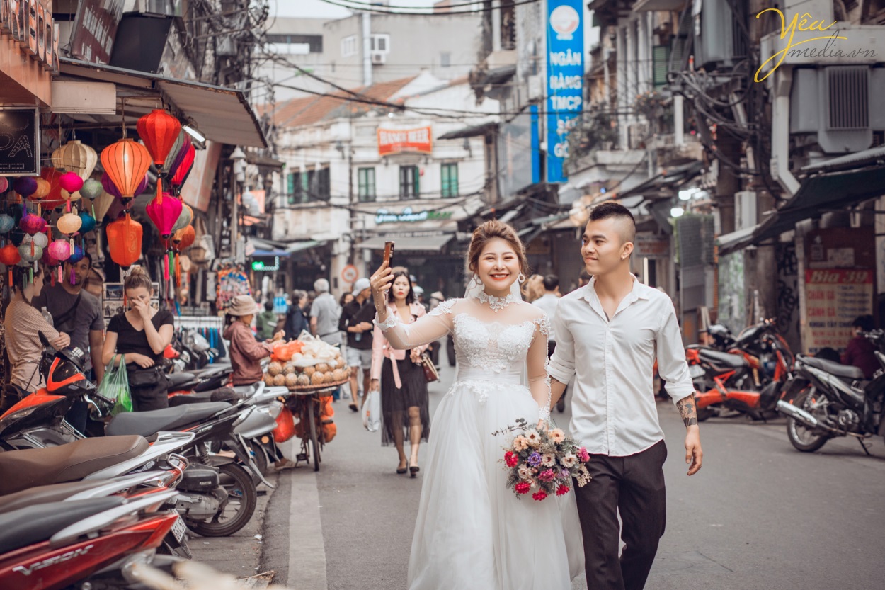 Album ảnh cưới chụp ở phố cổ Mã Mây - Hồ Gươm: cặp Phúc - Đào