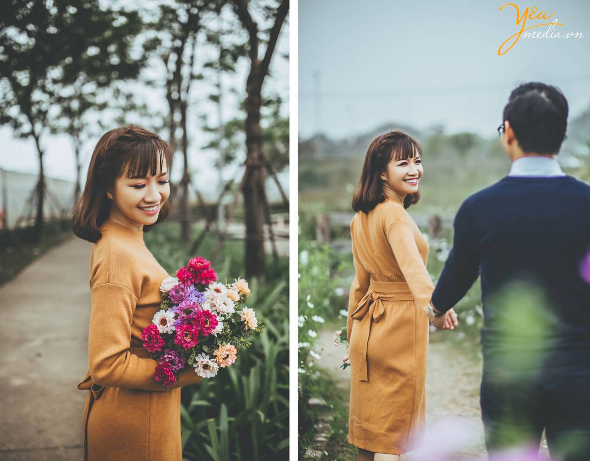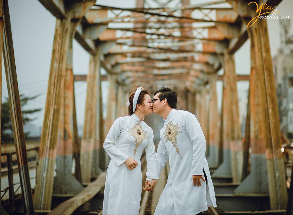 Được bạn bè giới thiệu, cặp đôi đáng yêu này tới Yêu Media vào một ngày cuối tháng 1 se lạnh, dâu rể muốn thực hiện một album ảnh cưới theo concept lãng mạn, nhẹ nhàng, chúng tôi đã đưa ra một số gợi ý địa điểm cùng với các gói chụp ảnh cưới để anh chị tham khảo. Sau khi tham khảo các gói chụp ảnh cưới của Yêu Media cô dâu chú rể Tất Kiên - Hoa Mai quyết định chọn phim trường Santorini Park và cầu Long Biên làm bối cảnh cho những tấm ảnh cưới.