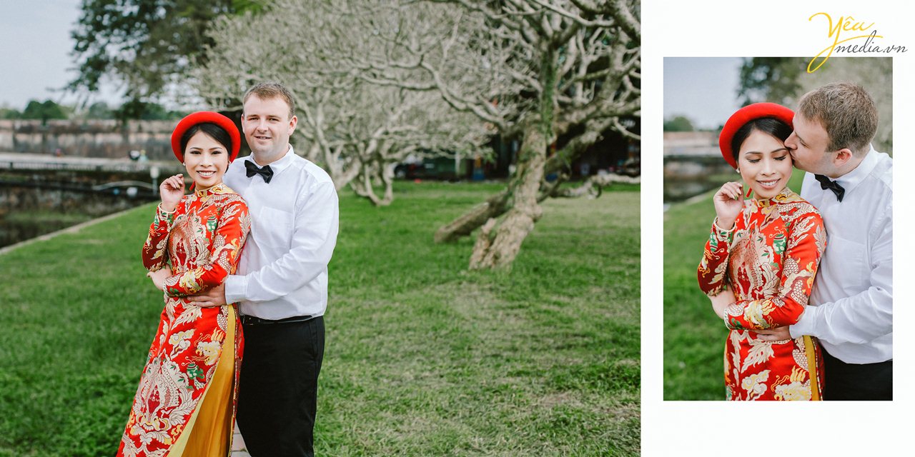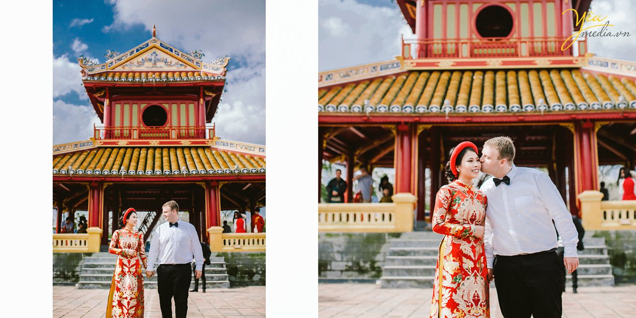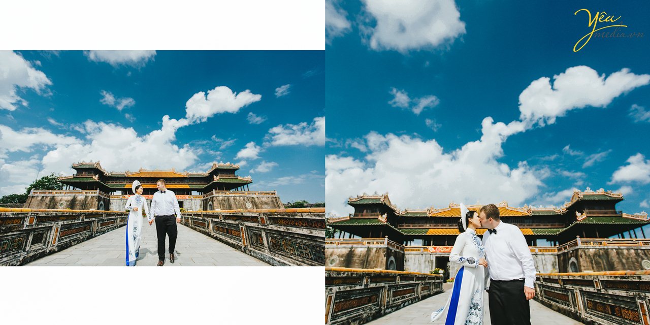 Lựa chọn các địa điểm chụp ảnh cưới đẹp ở Huế như Đại Nội - Sông Hương - Phim trường VTV Studio - Cặp đôi đã có những tấm hình ưng ý nhất để thể hiện tình yêu của mình.