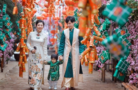 Chụp ảnh gia đình ba người dịp Tết nguyên đán: nhà anh Định