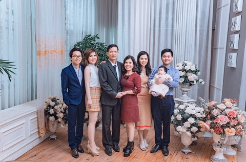Chụp ảnh gia đình đông người tại phim trường Hà Nội: nhà anh Luân