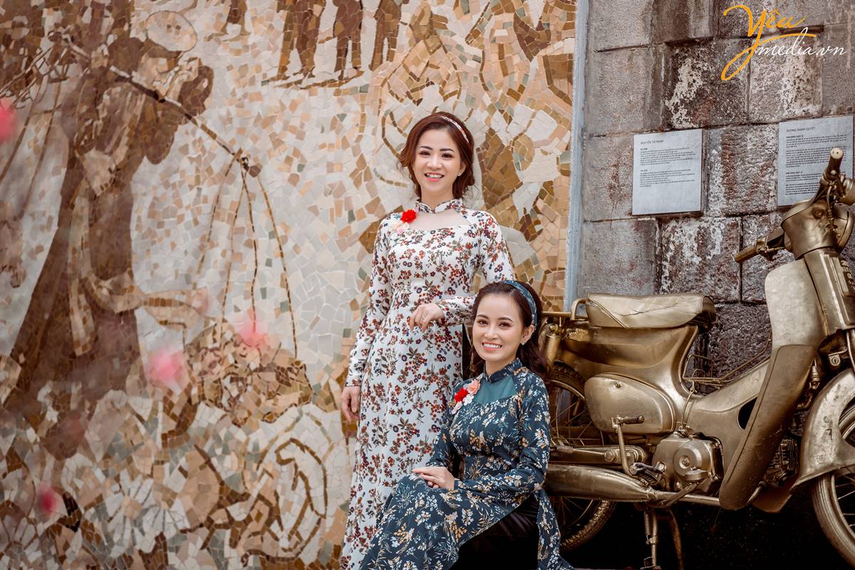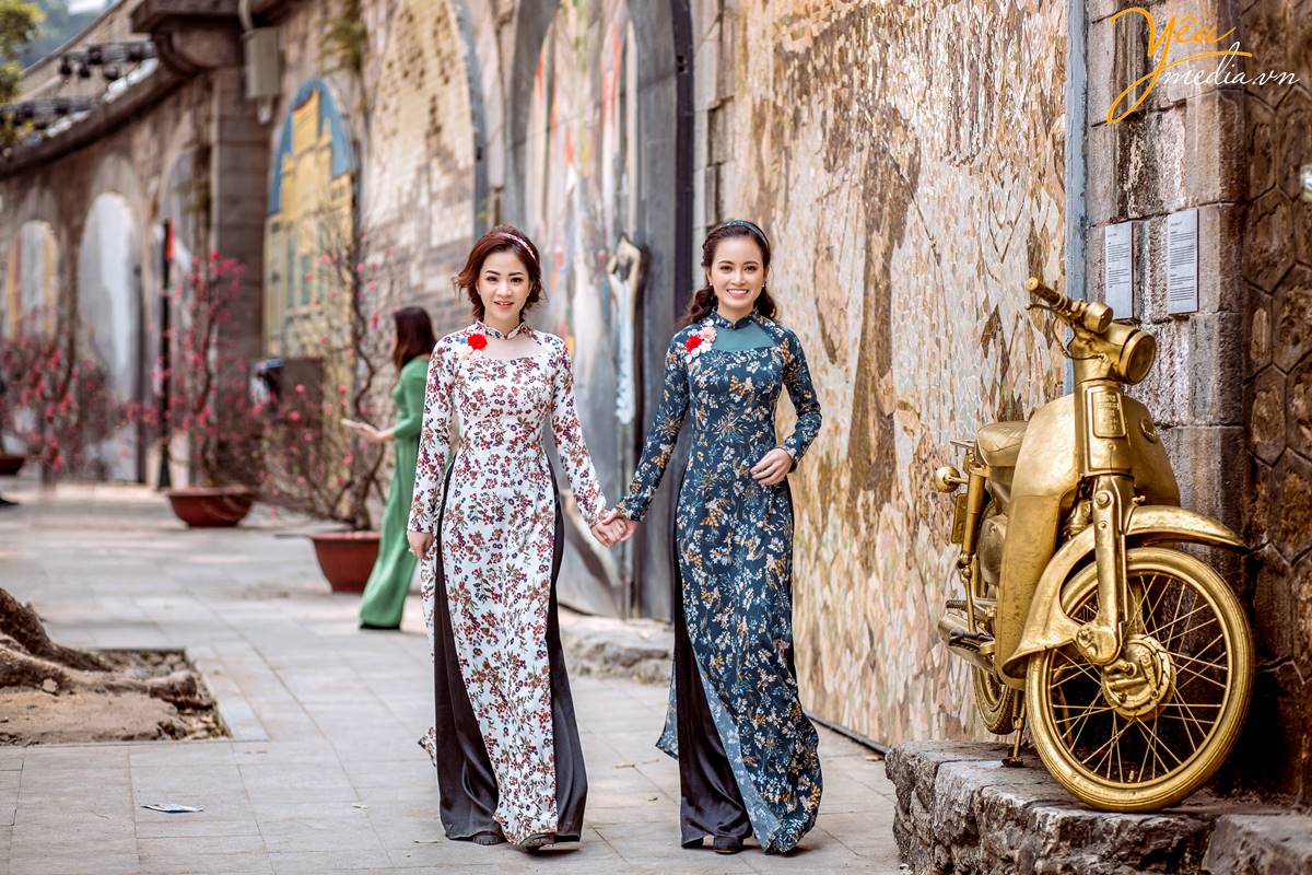 Mỗi dịp Tết đến xuân về, những người đi xa trở về quê hương gặp người thân, gia đình, bạn cũ có cơ hội gặp lại nhau, hàn huyên tâm sự, nói về những tháng ngày xưa cũ. Hãy cùng nhau lưu giữ lại những giây phút hạnh phúc đó bằng những tấm ảnh lưu niệm. Đôi bạn thân chị Thủy, chị Lan Anh đến Yêu Media đăng kí gói chụp ảnh áo dài Tết qua lời giới thiệu của người quen. Chúng tôi được nghe kể về tình bạn của hai chị, được biết lâu rồi họ mới có dịp gặp lại nhau nên muốn chụp một bộ ảnh hai trong một, vừa là có ảnh du xuân, vừa là làm một bộ ảnh chung của cả hai.