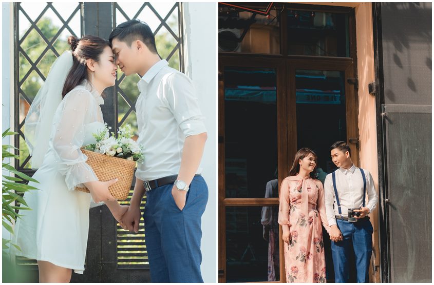 Ngoài địa điểm phim trường, cặp đôi cũng lựa chọn những góc phố phường Hà Nội như Tạ Hiền - Lương Ngọc Quyến - Mã Mây và những căn nhà cổ kính để thực hiện thêm concept cho bộ ảnh cưới của mình.