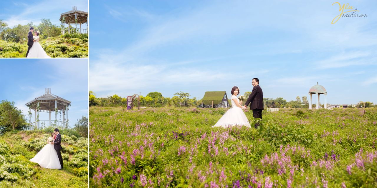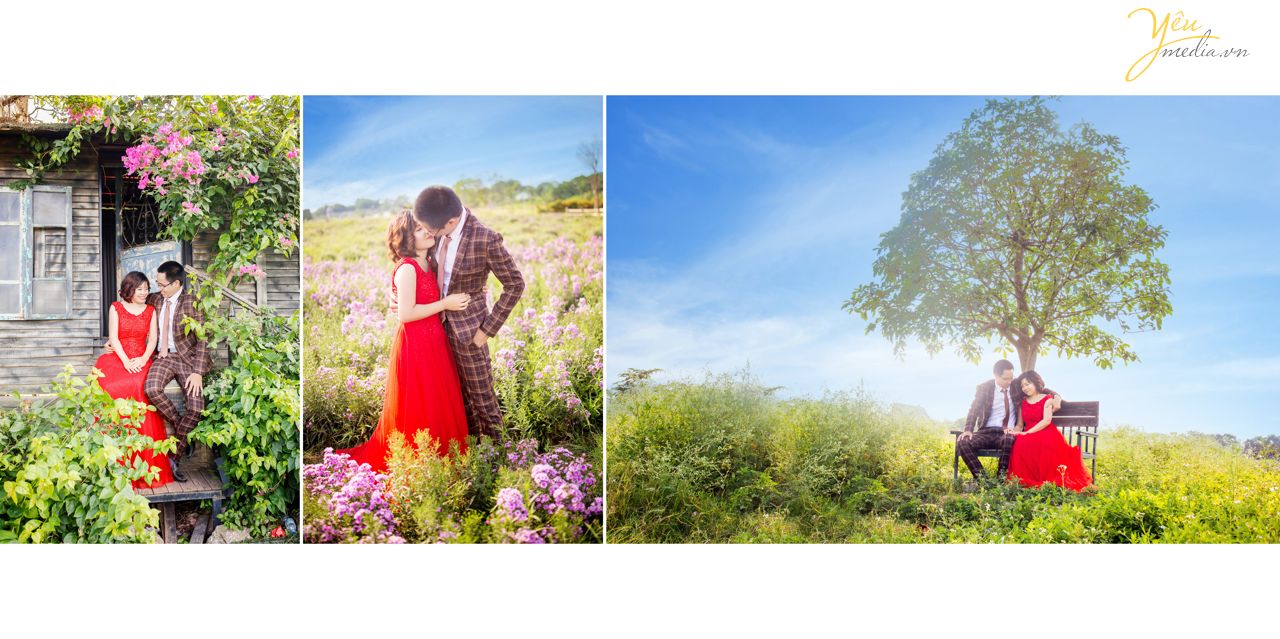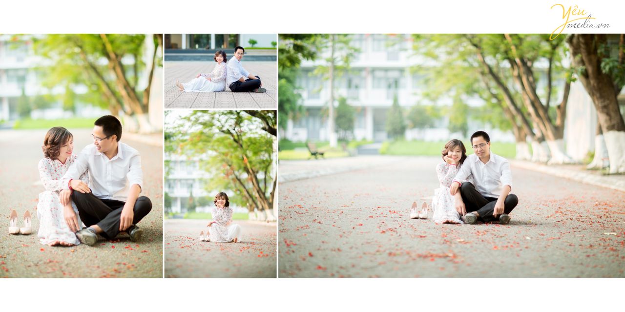 Các cặp đôi khi chụp ảnh cưới sẽ muốn bộ ảnh cưới của mình đa dạng bối cảnh góc chụp để bộ ảnh cưới trở nên thú vị và ý nghĩa hơn. Cặp đôi Bá - Thanh của Yêu Media quen nhau tại trường ĐH Bách Khoa vì thế muốn chụp lại ảnh cưới tại khuôn viên ngôi trường nhiều kỷ niệm này. Ngoài những shot hình đầy ý nghĩa này, cặp đôi cũng đã chọn đến chụp cưới tại thảo nguyên hoa Long Biên - phim trường với rất nhiều bối cảnh đẹp được các cặp đôi lựa chọn để chụp ảnh cưới.