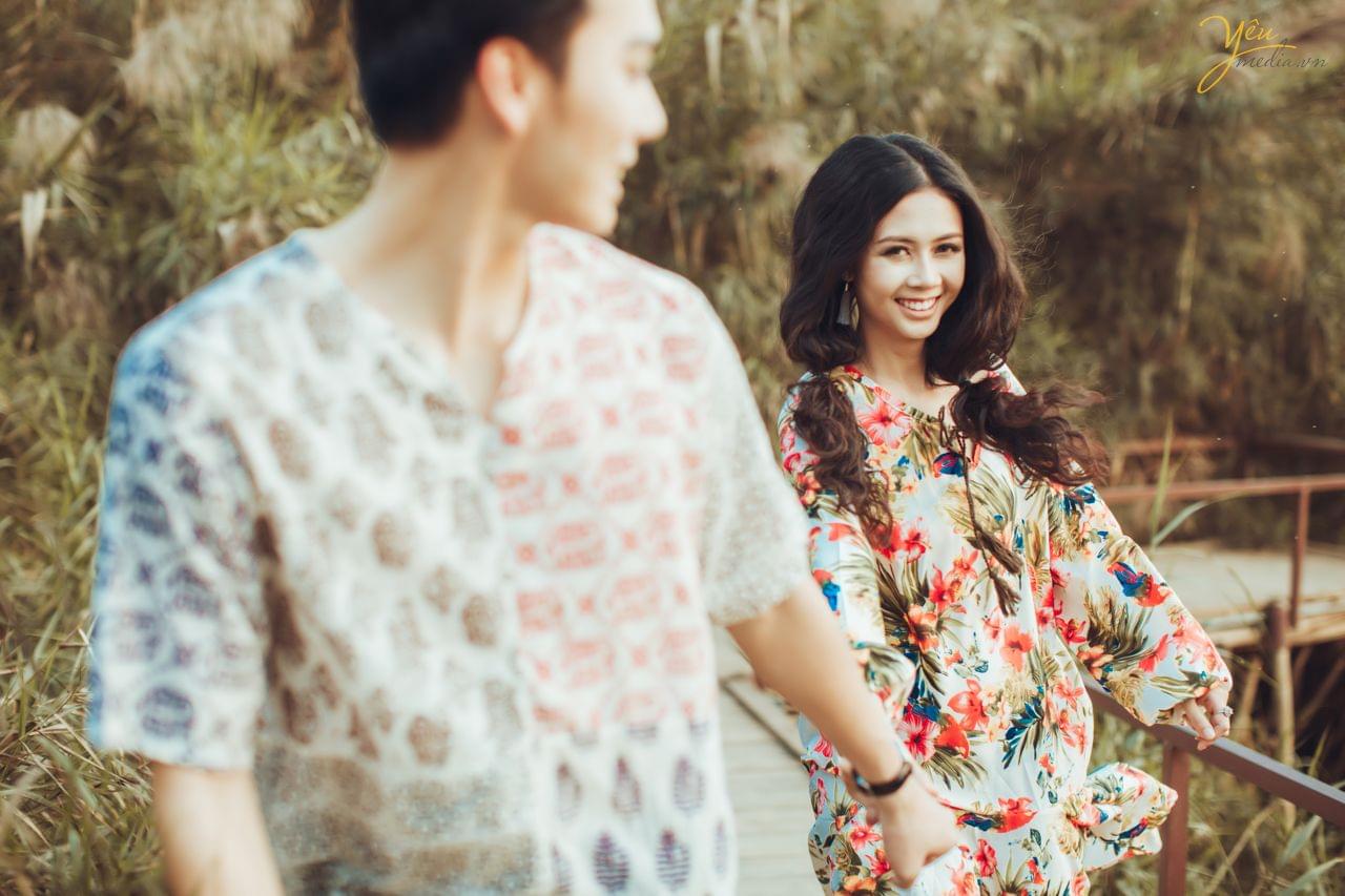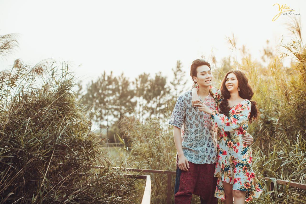 Bay bổng, thơ mộng và đầy phóng khoáng là những gì có thể nói về 2 bạn trẻ Hải Nam và Thùy Vân. Bộ ảnh chụp cỏ lau tại bãi đá sông Hồng vào một buổi xế chiều với chút nắng còn vương lại trên những lá cỏ nhẹ nhàng và sâu lắng như bản nhạc nhẹ nhàng đi vào lòng người.