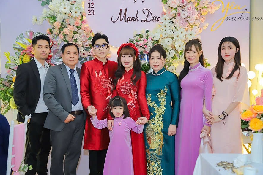 • Cô dâu xuất hiện xinh đẹp trong sự hân hoan của chú rể và hai bên gia đình
