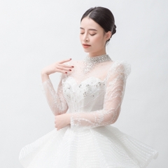 Váy cưới cao cổ, dài tay, đính đá phần thân trên sang trọng Giá thuê: 5.000.000