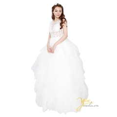 Váy cưới Lilac từ Yêu Media đẹp lộng lẫy mang phong cách công chúa kiêu kỳ dành cho các cô gái lãng mạn. Váy cưới với chân váy bồng bềnh được xếp từ nhiều lớp voan phồng và hoa ren nổi....