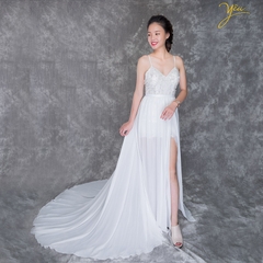 Váy cưới Lani 2 dây từ Yêu Media đầy quyến rũ và ngọt ngào, tạo điểm nhấn vào bờ vai thanh mảnh làm nổi bật vẻ đẹp quyến rũ của nàng dâu trong ngày trọng đại Thân dưới xẻ tà táo bạo để lộ đôi...