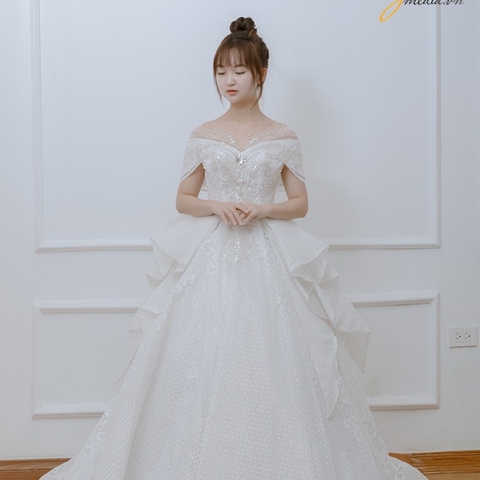 Váy cưới đuôi dài, ren tầng nhiều lớp, phù hợp mặc chụp ảnh cưới Giá thuê: 4.000.000/ngày