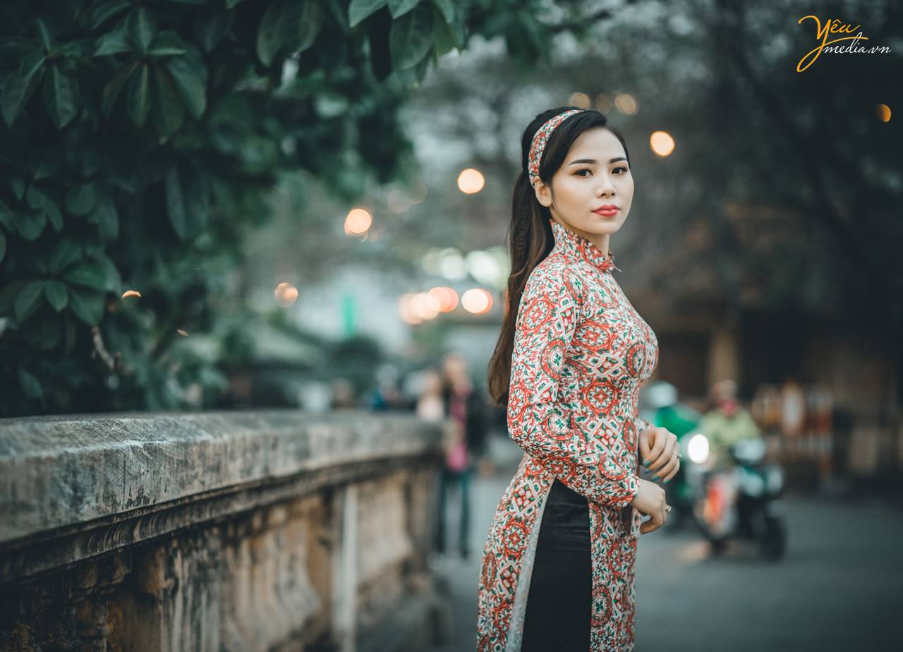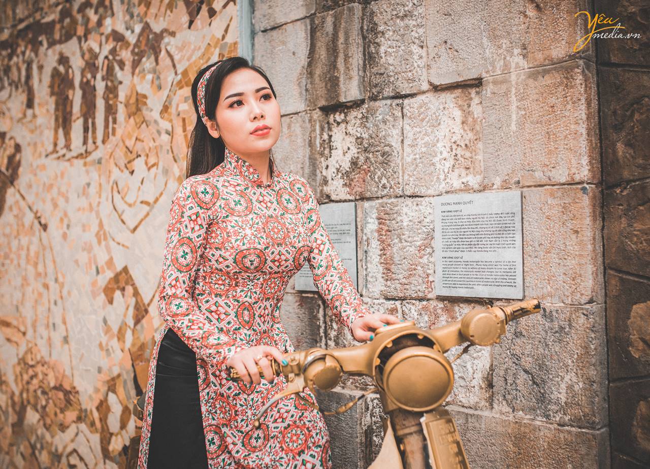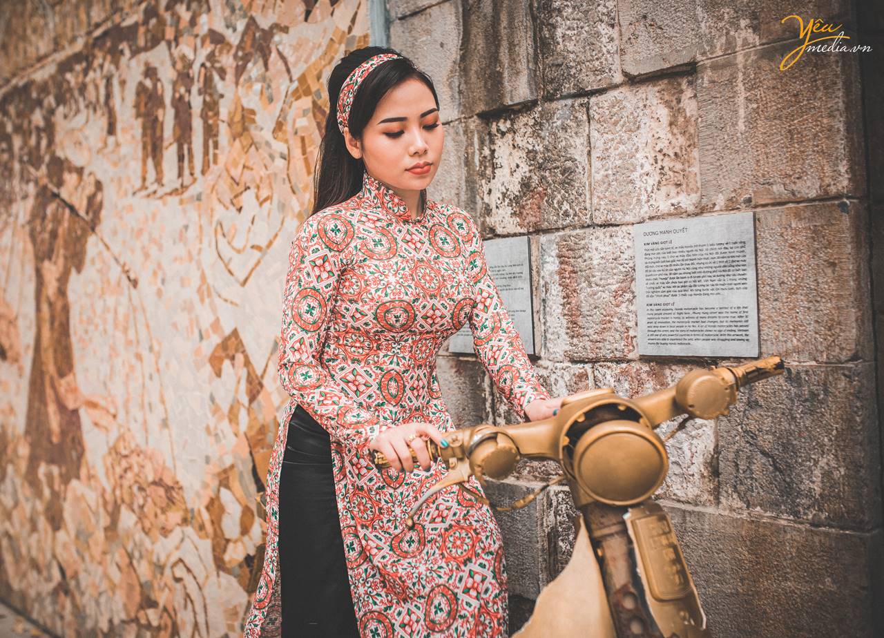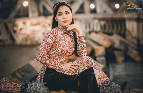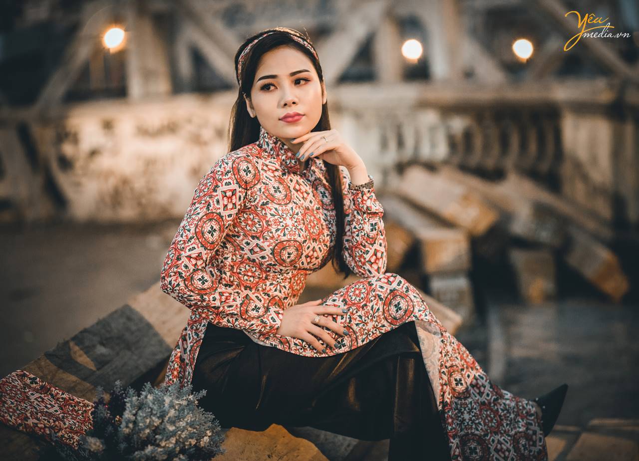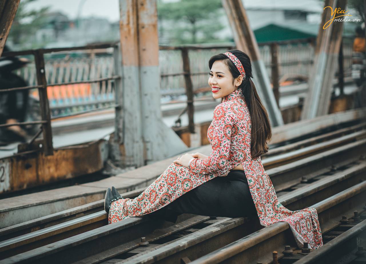 Chụp ảnh áo dài cô ba Sài Gòn tại phố Bích Họa và cầu Long Biên