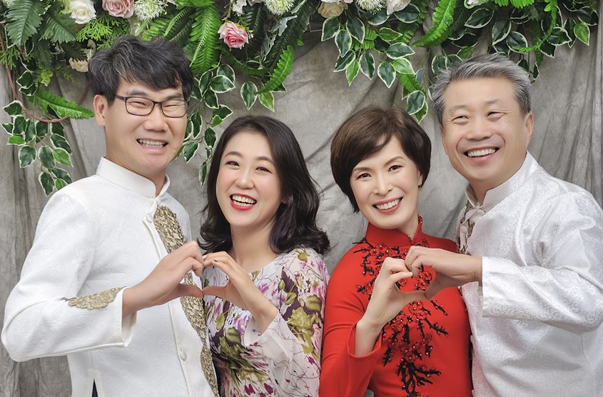 Chụp ảnh áo dài Việt Nam cho hai cặp đôi người Hàn Quốc trong studio