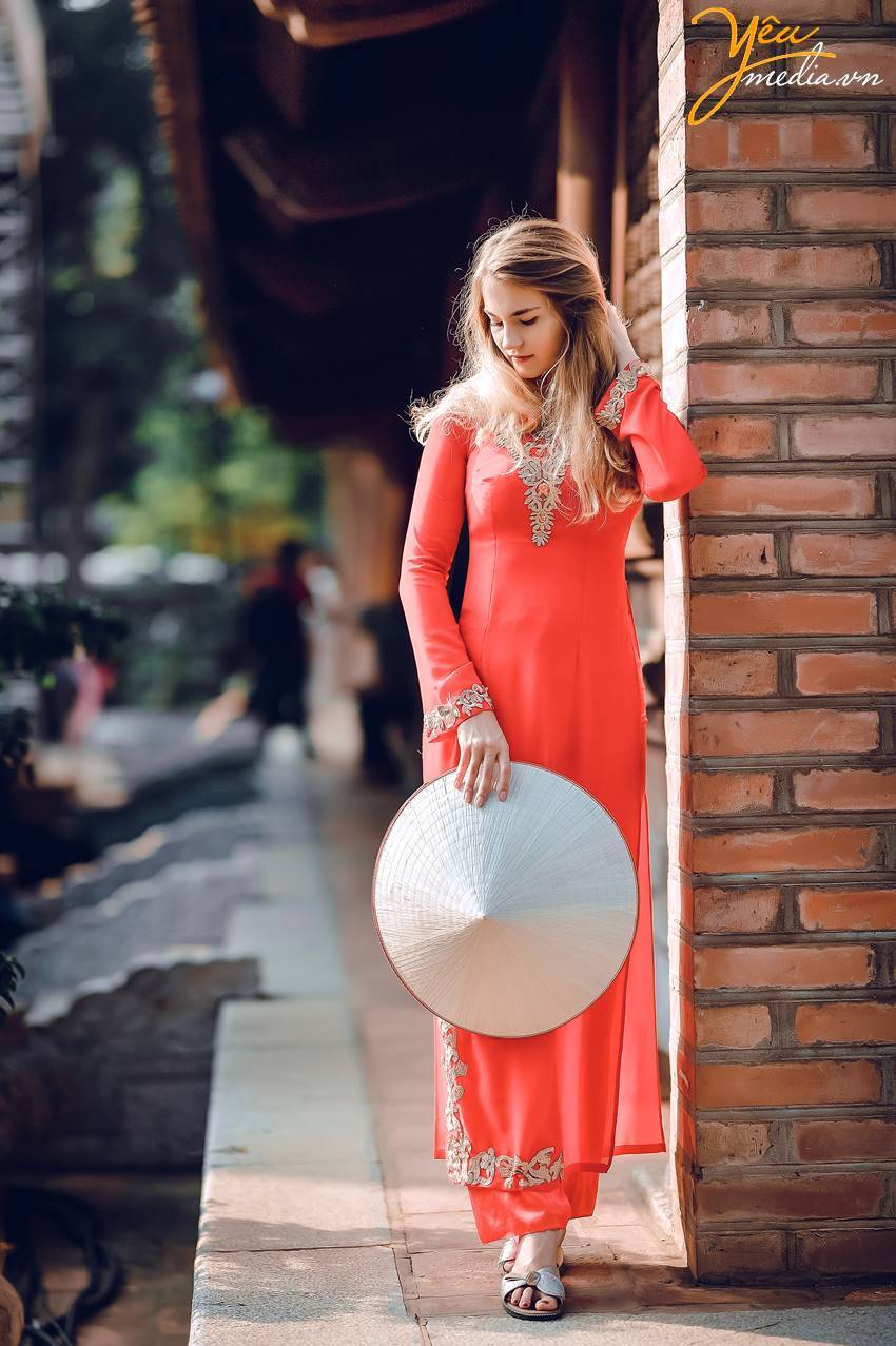 Với niềm yêu thích với áo dài Việt Nam, qua lời giới thiệu của bạn bè, cô gái trẻ người nước ngoài tìm tới ekip Yêu Media lựa chọn cho mình chiếc áo dài đỏ, được may theo phong cách kết hợp truyền thống và hiện đại.