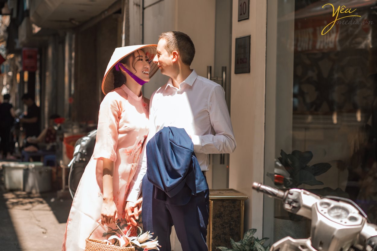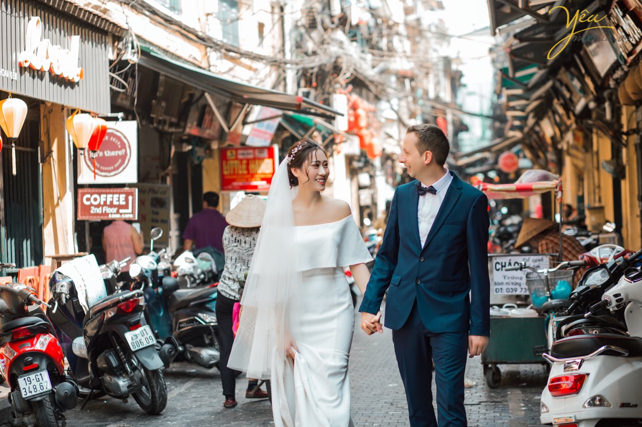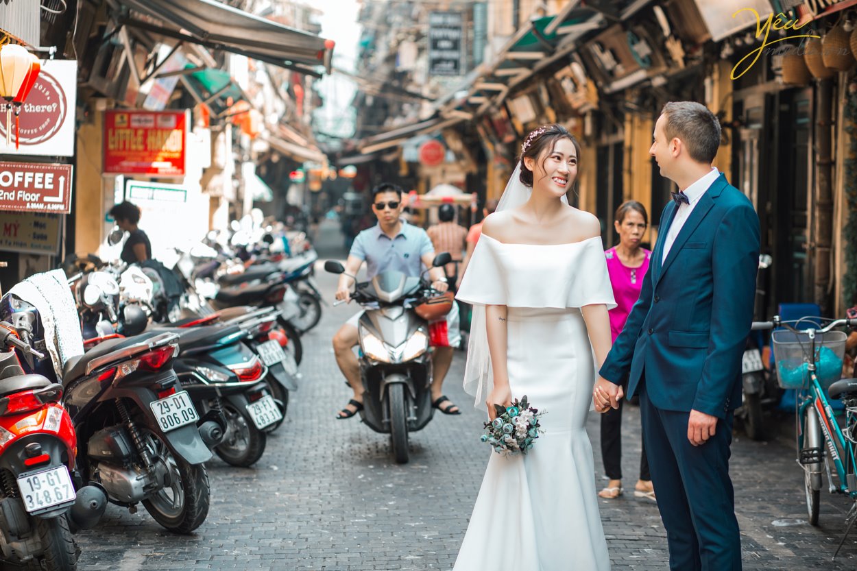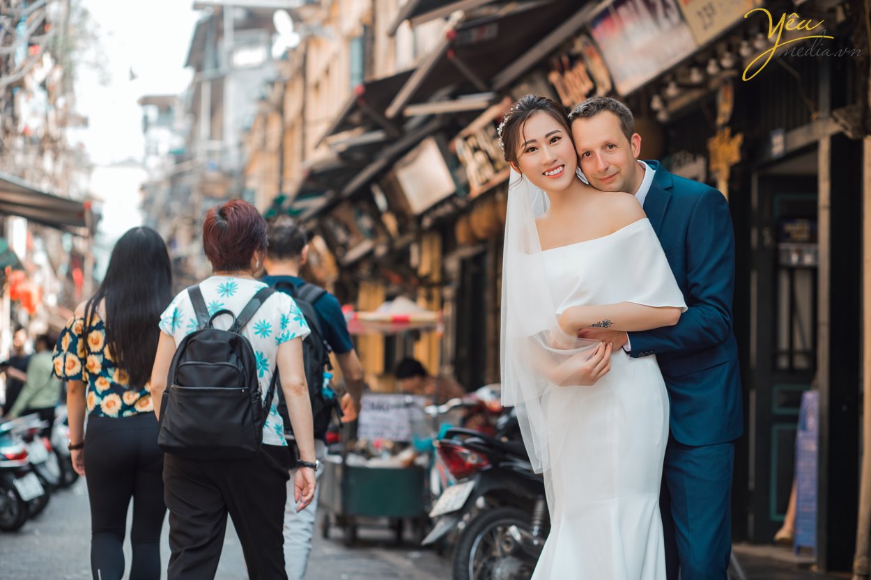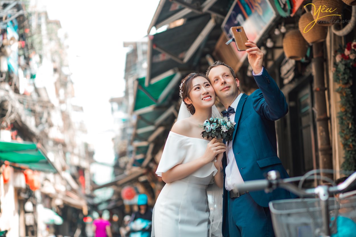 Chụp ảnh cưới chú rể Tây cô dâu Việt trong phố cổ Hà Nội tuyệt đẹp