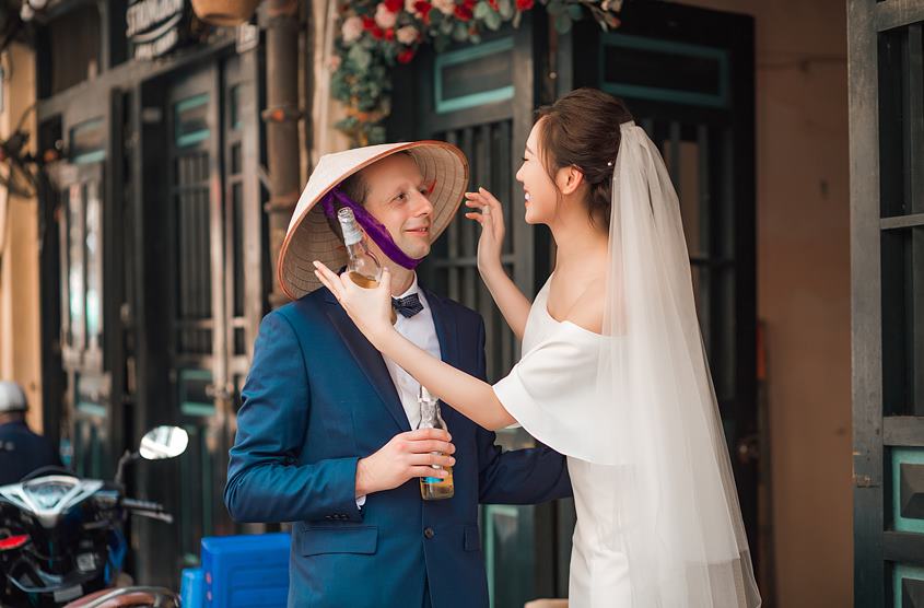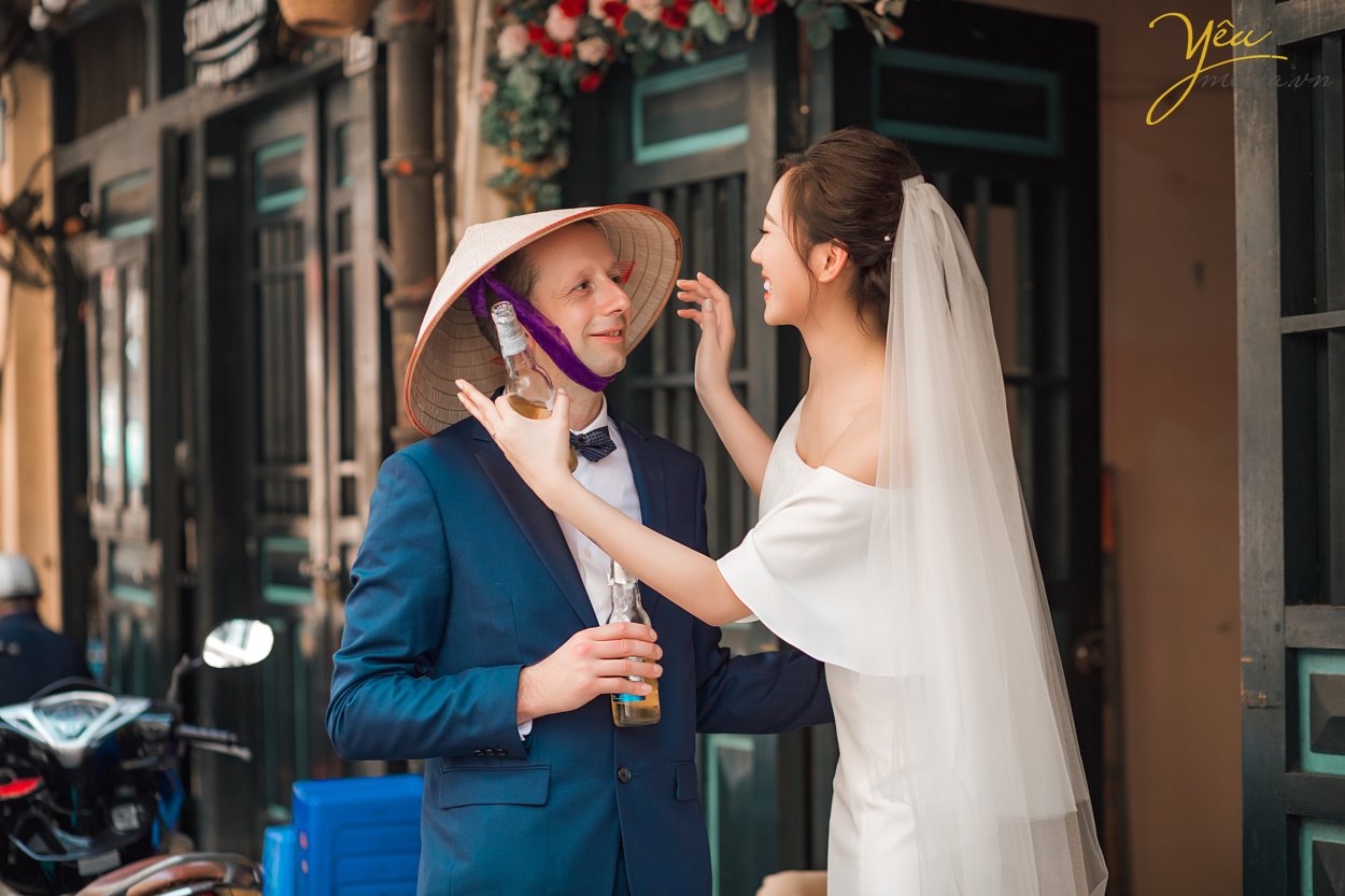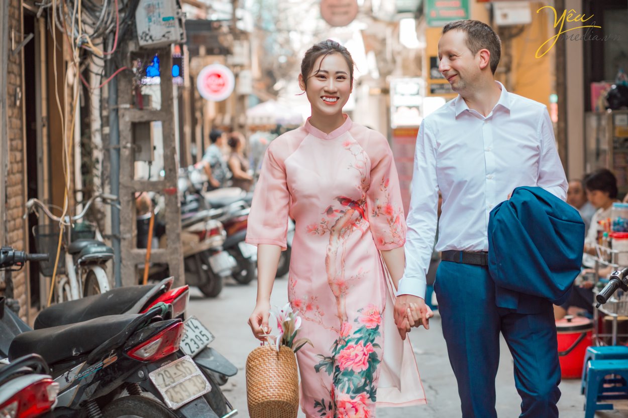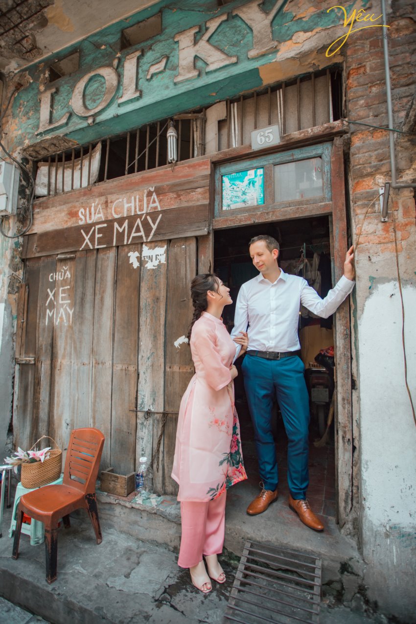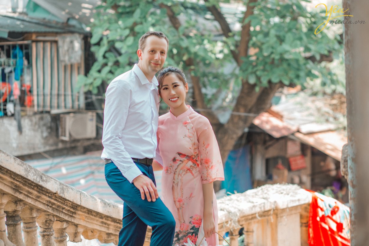Chụp ảnh cưới chú rể Tây cô dâu Việt trong phố cổ Hà Nội tuyệt đẹp