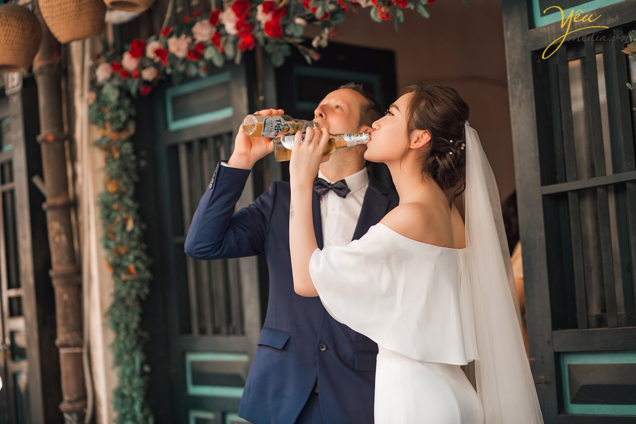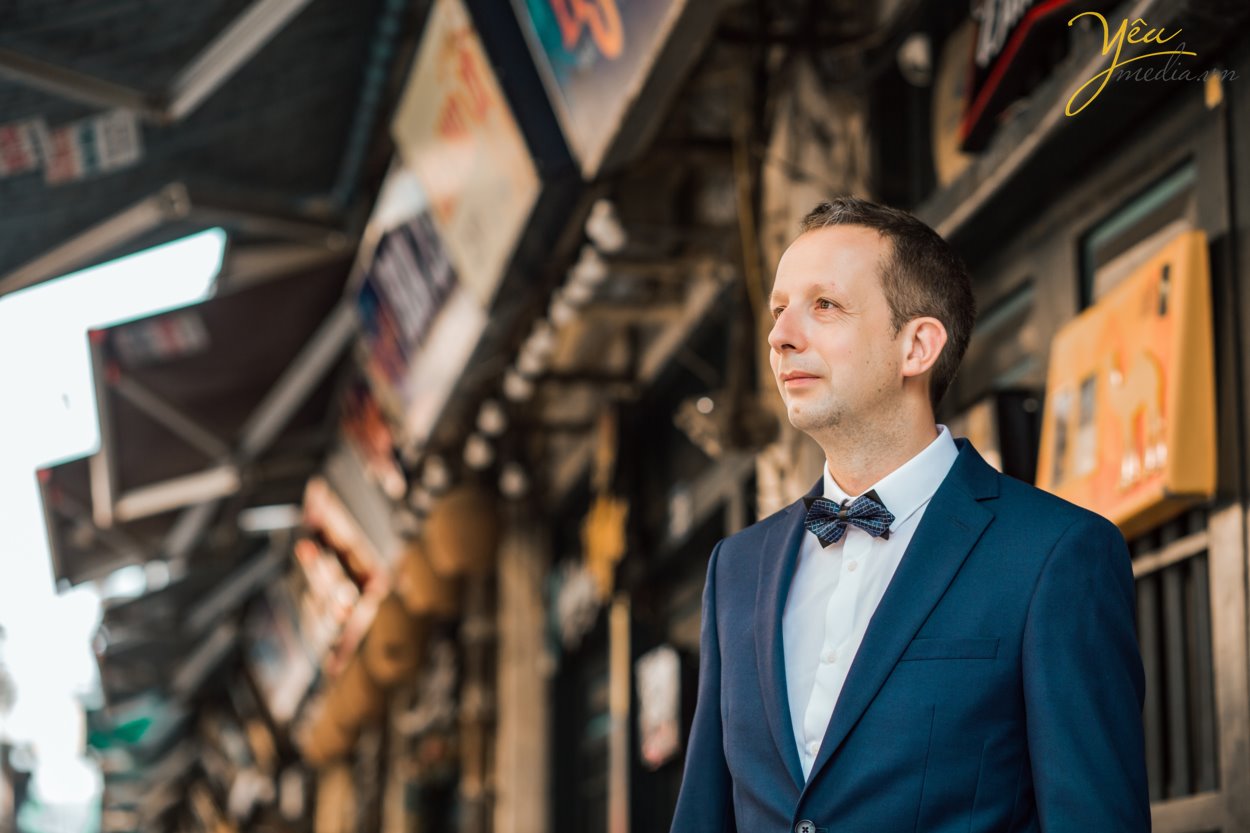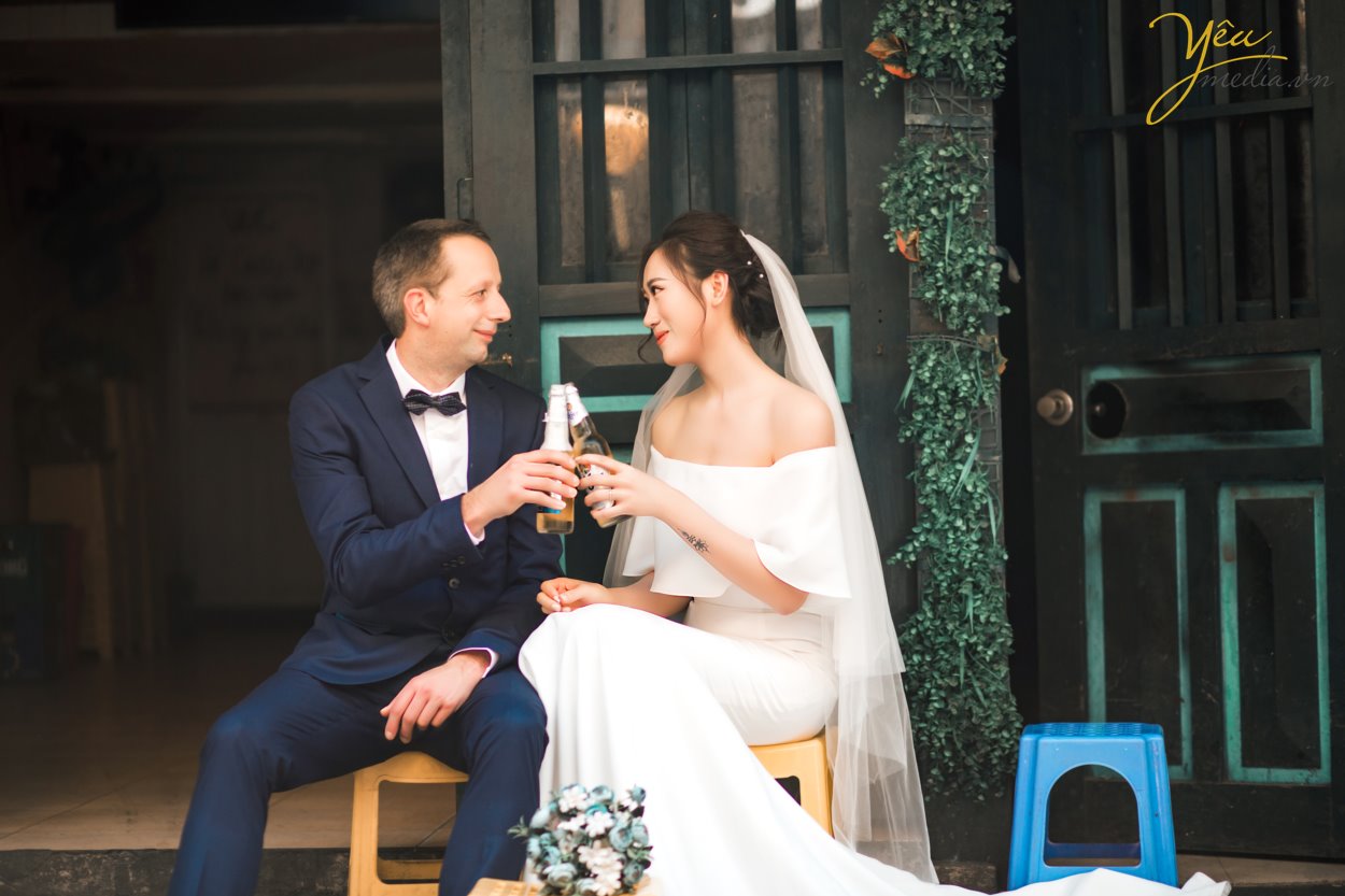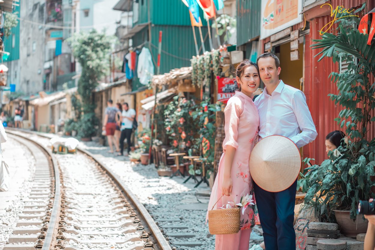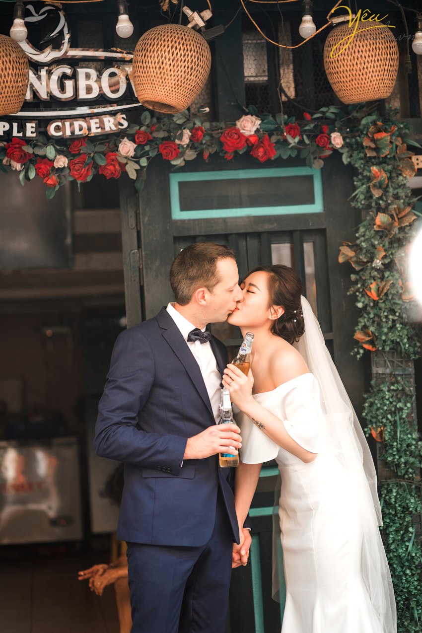 Chụp ảnh cưới chú rể Tây cô dâu Việt trong phố cổ Hà Nội tuyệt đẹp