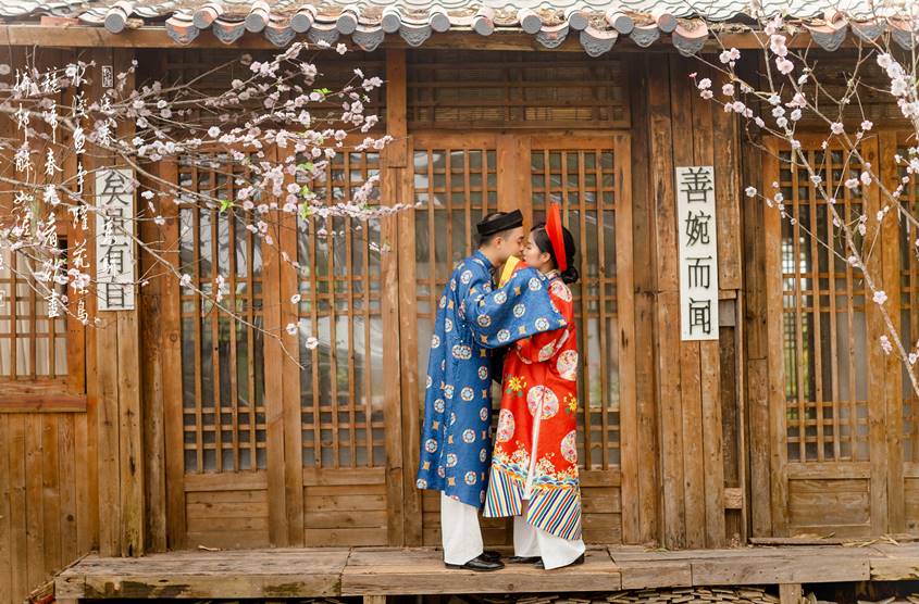 Cô dâu Giang và chú rể Dũng của Yêu media cũng là những người yêu thích vẻ đẹp truyền thống của những bộ áo này, nên đã quyết định chọn trang phục Áo Nhật Bình và Áo Tấc làm 1 trong những trang phục chụp Album ảnh cưới của mình.