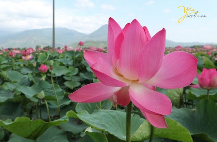 Những cánh sen hồng phấn nhẹ nhàng kết hợp cùng màu xanh của lá, màu vàng của nắng và màu trắng của mây trời sẽ tạo nên concept chụp hình đậm chất thơ mộng và trữ tình. Khung này này cực kỳ thích hợp với những tà áo dài hay chụp ảnh cưới theo chủ đề đồng quê.