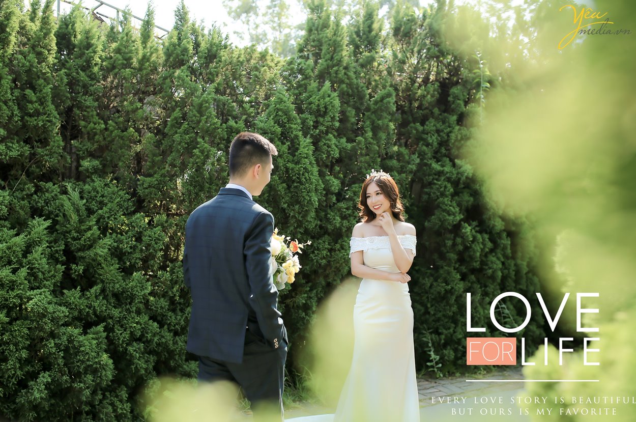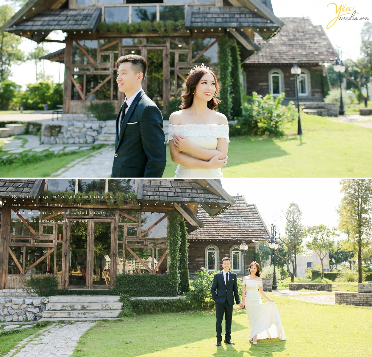 Cặp đôi chú rể Nghĩa - cô dâu Hồng tại Hà Nội do yêu thích phong cách thiết kế bối cảnh tại địa điểm này nên đã liên hệ với studio Yêu Media để chụp ảnh cưới cho mình.
