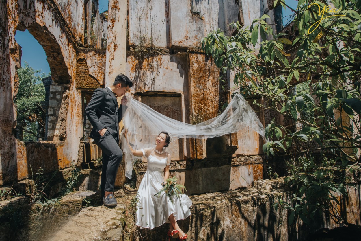 Với background không chỉ hoang sơ mà còn rất “Tây” ở tu viện Tả Phìn, dù trong tiết trời sương khói mờ ảo hay khi mặt trời đã lên cao thì nơi đây cũng sẽ cho bạn những bức ảnh cưới đẹp ấn tượng để đời.