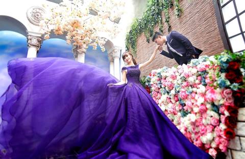 Những thảm hoa rực rỡ sắc màu cũng được nhiều cặp đôi lựa chọn, đặc biệt, vào mùa xuân, những khu vườn hoa bướm đẹp như tranh sẽ trở thành bối cảnh chụp hình cưới vô cùng lãng mạn.