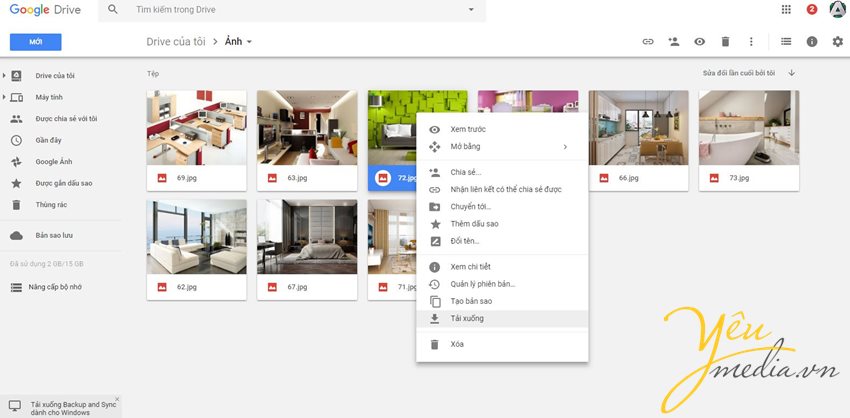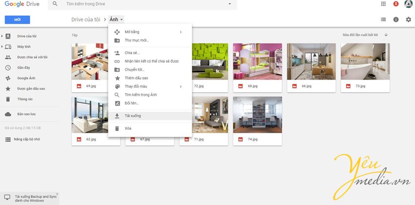 Sau đây, Yêu Media sẽ hướng dẫn cho các bạn các thao tác xem và tải ảnh trên Google Drive một cách tiện lợi và hết sức đơn giản như sau: