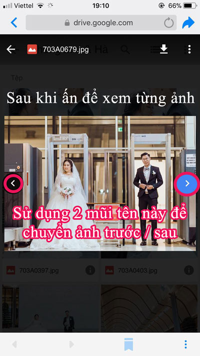 Ấn vào từng ảnh và di chuyển bằng các mũi tên trước / sau để xem ảnh