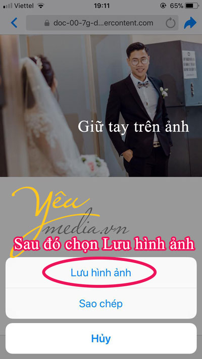 Sau đó giữ tay vào trung tâm ảnh, chọn "Lưu ảnh" là ảnh sẽ tự động được lưu vào Gallery (Thư viện ảnh) của máy điện thoại