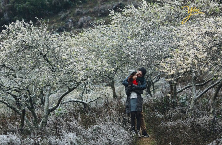 Quý như một đặc sản của vùng cao nguyên Mộc Châu, hoa mận trắng phủ kín khắp các bản làng làm cho khung cảnh nơi đây như được khoác lên một lớp áo bông ấm áp. Dưới cái thời tiết se lạnh và tô thêm phần nền hoa mận trắng đẹp sẽ giúp cho bạn có được bộ ảnh tuyệt đẹp.