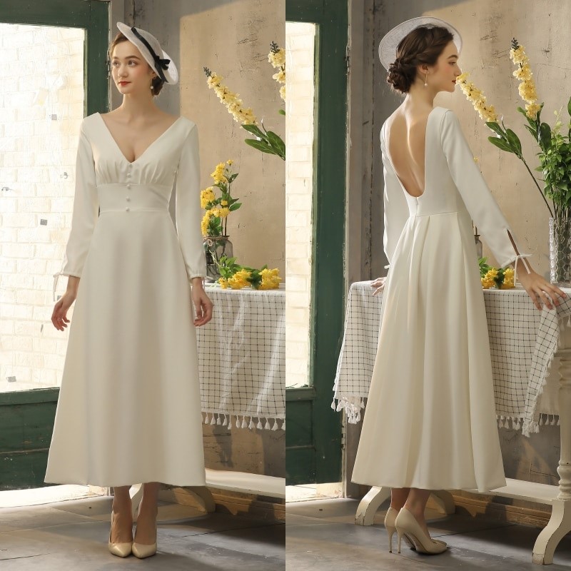 Bộ váy xòe dáng công chúa hay dáng đuôi cá hiện là thời thượng, nhưng ai biết trong 25 năm tới xu hướng thời trang cưới sẽ biến đổi đến đâu. Tốt nhất, bạn nên chuẩn bị thêm cho mình bộ váy cưới dáng suôn màu trắng, màu kem quen thuộc và xuất hiện trong bộ ảnh cưới với chiếc váy này. Váy dáng suôn rất ít khi lạc hậu trước chu trình thời trang.