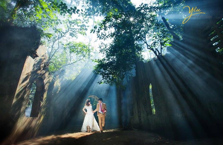 Địa điểm chụp mà Yêu Media gợi ý cho các bạn là nhà thờ đá cổ, cổng trời, công viên Tam Đảo, cầu mây, quán Gió… Các bạn có thể mang váy cưới dáng xòe rộng hoặc váy đuôi cá, ngoài ra hãy mang them 1 số trang phục mang phong cách vintage theo sẽ rất hợp với cảnh nơi đây.