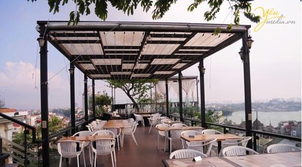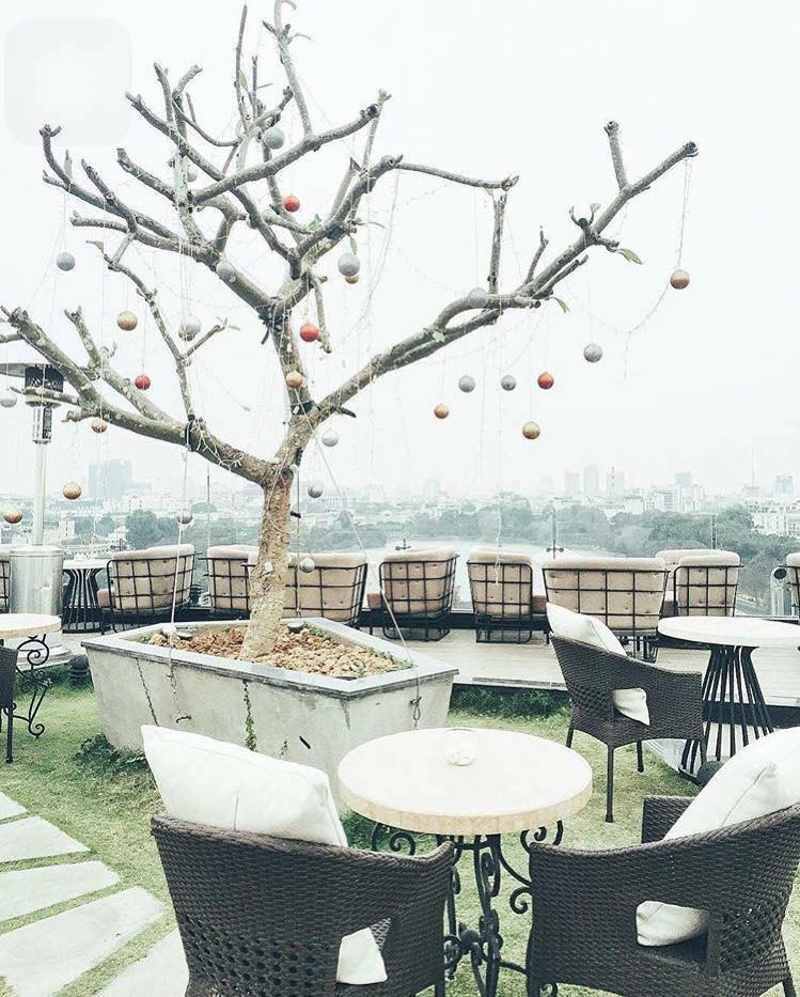 Sân thượng của quán được decor theo phong cách sky-garden kiểu Châu Âu, nên đến đây vào những ngày cuối tuần, khi quanh khu Hồ Gươm trở thành phố đi bộ, bạn sẽ được tận hưởng sự yên tĩnh, trong lành của những ngày thu lãng mạn.