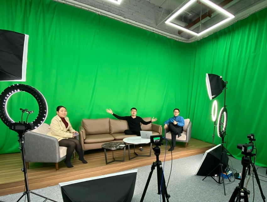 Phòng live lớn không chỉ có sự khác biệt về diện tích mà còn có 1 chiếc phông xanh cực rộng để mọi người có thể ki phông hình mà mình muốn, căn phòng đủ rộng để cho 1 ekip có thể vào sắp xếp sản phẩm cũng như là hỗ trợ các bạn cùng live.
