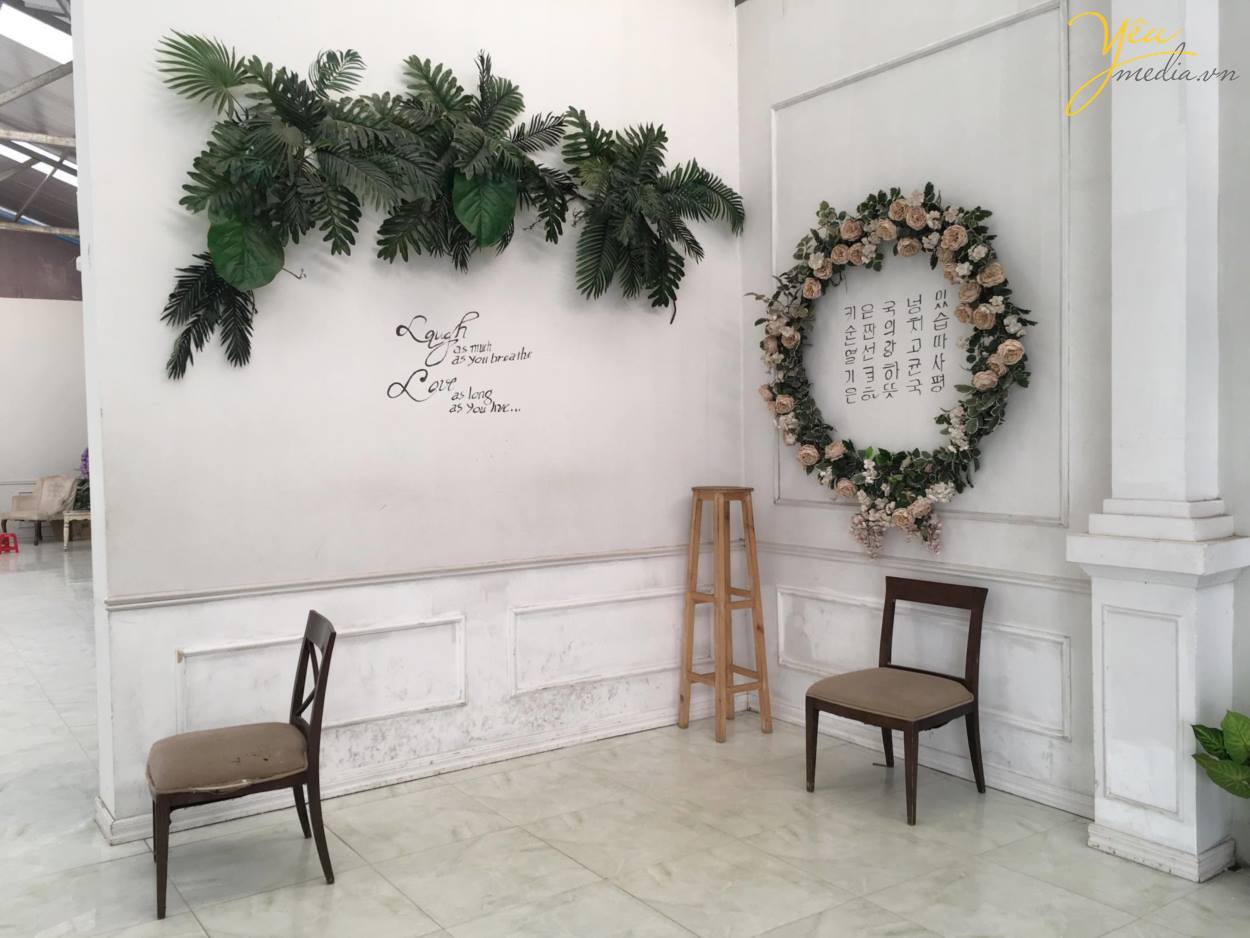 Bên cạnh khung cảnh ngoài trời gần gũi hoang sơ thì phong cách trong studio lại mang đậm chất Hàn quốc hiện đại nên bạn có thể dễ dàng kết hợp giữa hiện đại và phong cảnh thiên nhiên mộc mạc để tại nên một album ảnh đa màu sắc. Từng vật dụng trong studio được lựa chọn rất kĩ càng và cẩn thận, từ chiếc ghế, cây hoa, chiếc bàn hay những góc nhỏ nhất cũng rất được quan tâm đã tạo nên một phòng chụp rất sang trọng.
