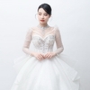 Váy cưới cao cổ, dài tay, đính đá phần thân trên sang trọng