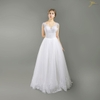 Váy cưới Mia của Yêu Media thiết kế ren phủ vai tinh tế, chân váy xòe với các lớp voan xếp duyên dáng tạo độ rủ và mềm mại cho váy.